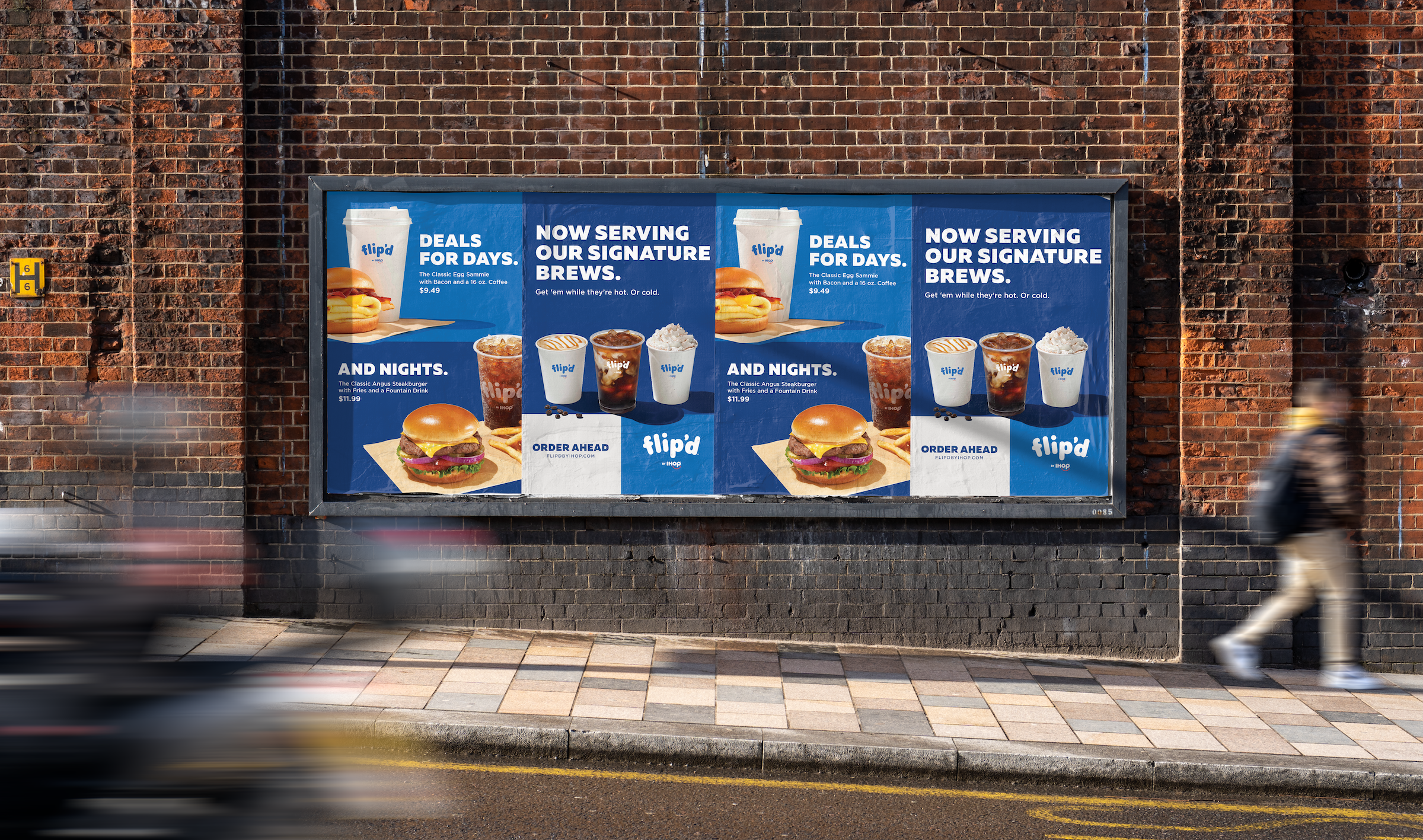 Flip’d was a fast-casual restaurant concept created by IHOP to offer quick, on-the-go versions of their classic menu items. The goal was to attract busy customers with visually engaging promotions that reflected IHOP’s familiar charm in a fresh, modern way. I designed social media graphics and outdoor signage tailored for storefront display, using IHOP’s provided imagery and templates as a foundation. My focus was on crafting balanced layouts, refining font hierarchy, and enhancing visual flow to maximize impact and capture attention both in-person and online.