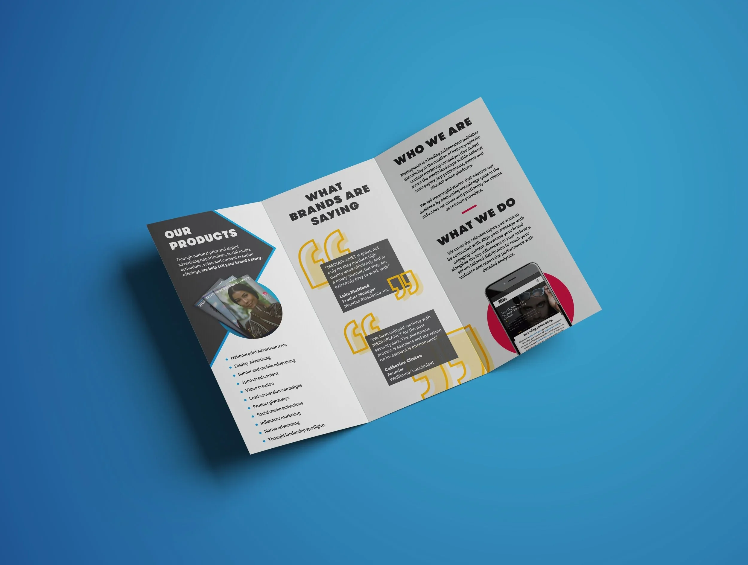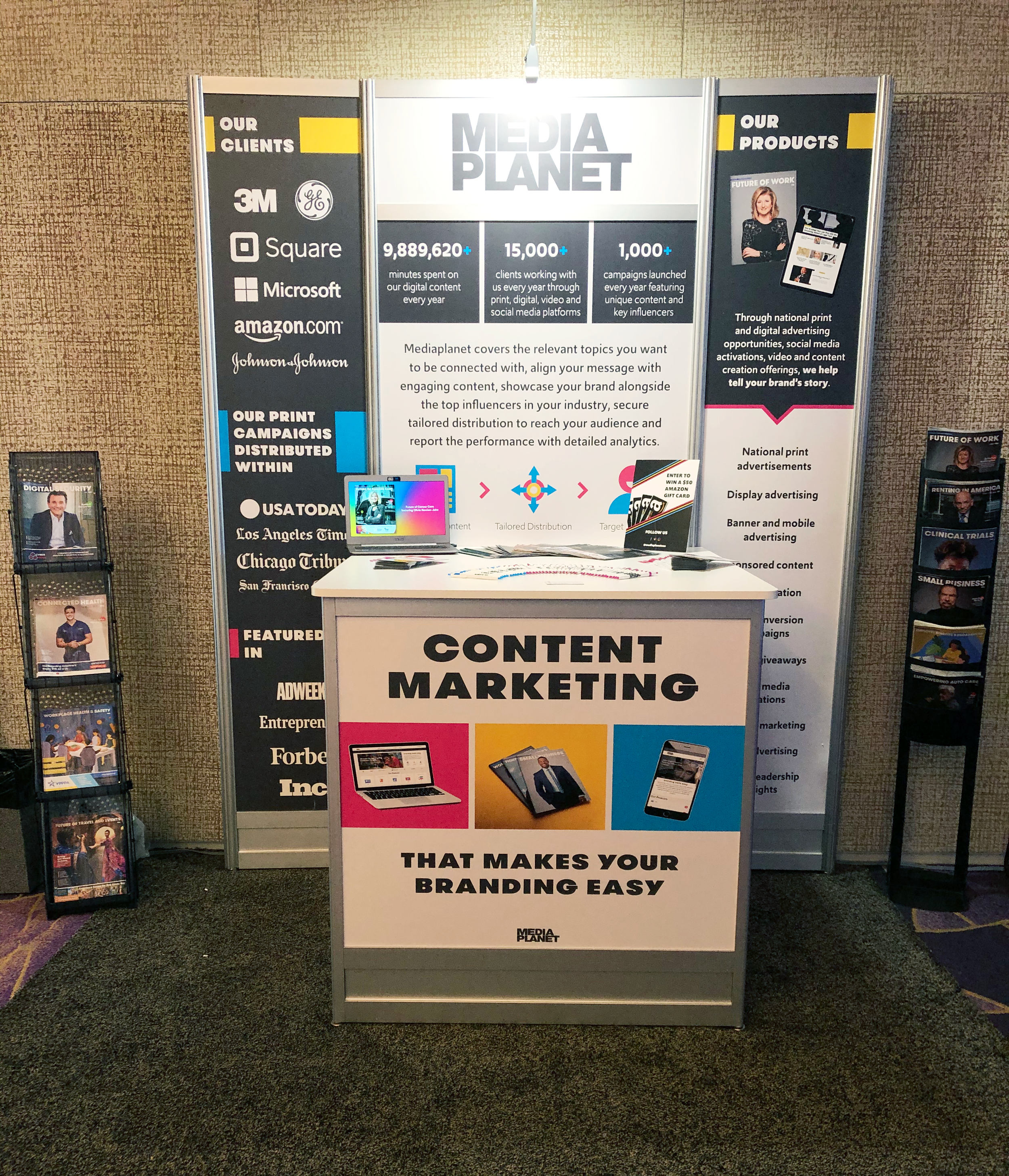 With these guidelines in place, I was able to expand the system into marketing and promotional applications, including brochures, product materials, event booths, and social media. This ensured that Mediaplanet’s visual language felt cohesive and recognizable across every environment, from client-facing presentations to large-scale industry events.